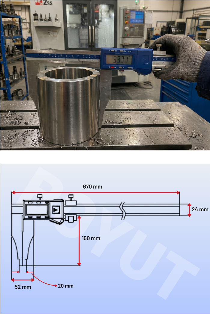- Dış çap ölçümüne uygun yapısı, büyük parçaların dış ölçü ve kalınlık kontrollerinde daha odaklı kullanım sunar. Özellikle geniş yüzeyli veya hacimli iş parçalarında daha kontrollü ve pratik ölçüm alınmasına yardımcı olur.