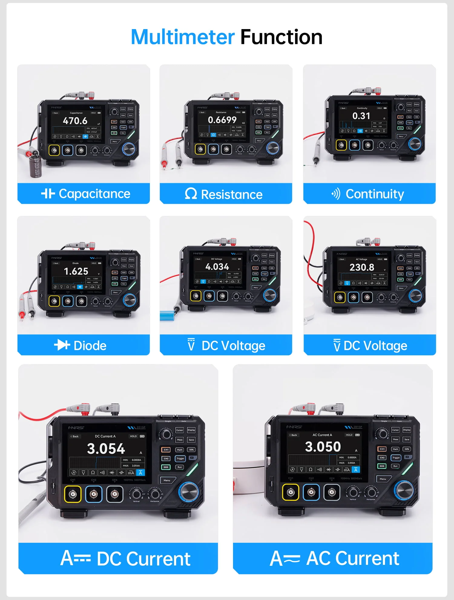 Fnirsi 2D15P 2 Kanallı 100MHz Fosfor Osiloskop Multimetre