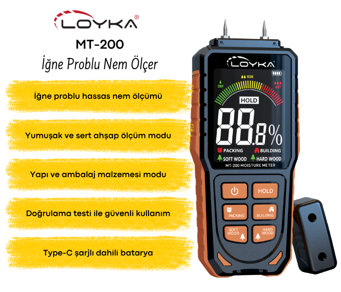 Loyka MT-200 İğne Problu Nem Ölçer Ahşap Karton Yapı Malzemeleri Nem Ölçer
