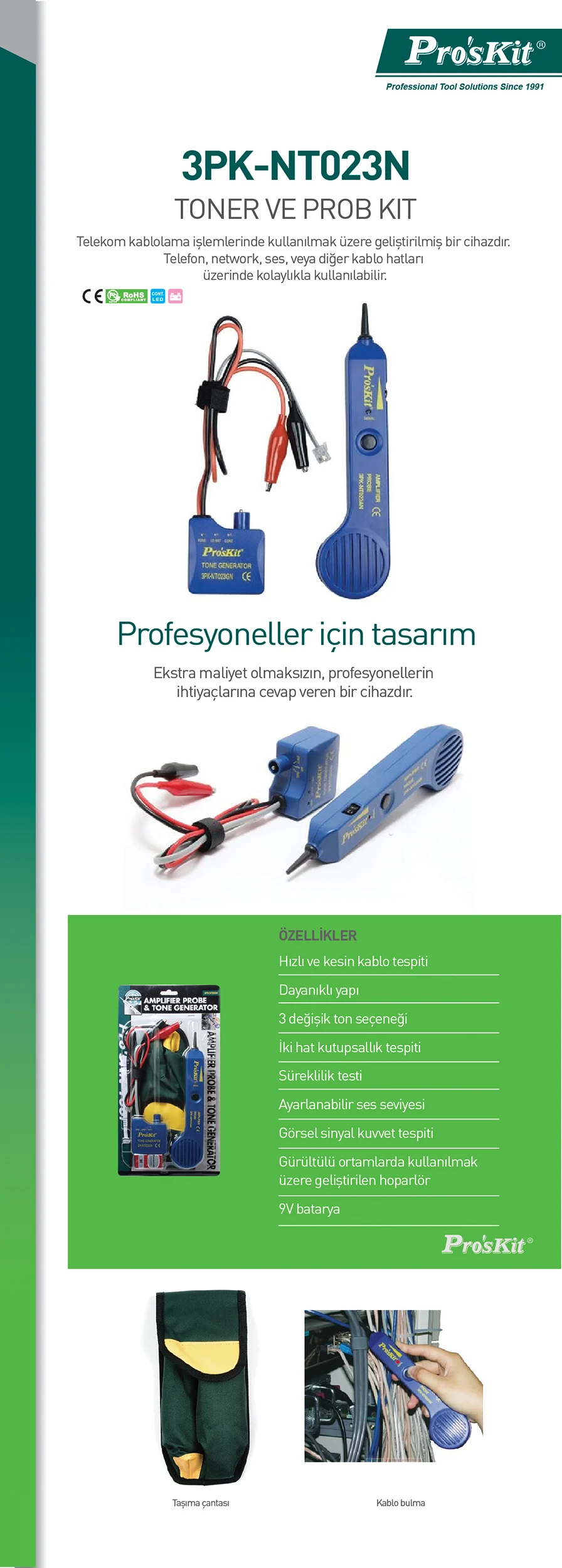 Model | Proskit 3PK-NT023N Toner ve Prob Kit |