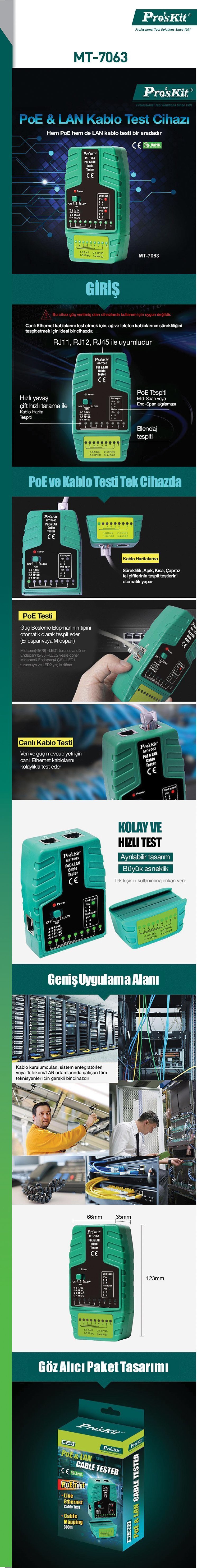 Proskit MT-7063 Poe ve Lan Kablo Test Cihazı