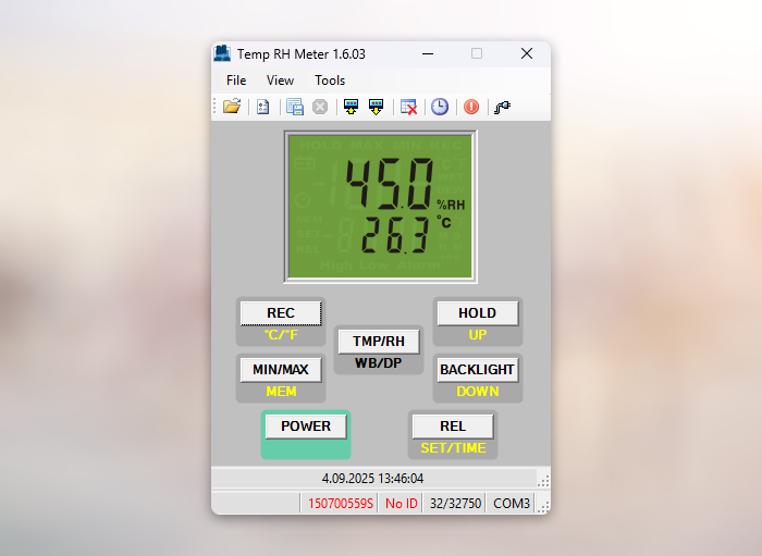 - USB bağlantısı üzerinden bilgisayara aktarılan bu veriler, beraberinde sunulan yazılım aracılığıyla grafiksel olarak görüntülenebilir, analiz edilebilir ve raporlanabilir. Bu özellik, uzun süreli ortam takibi ve kalite kontrol raporlamaları için cihazı oldukça değerli bir araç haline getirir.